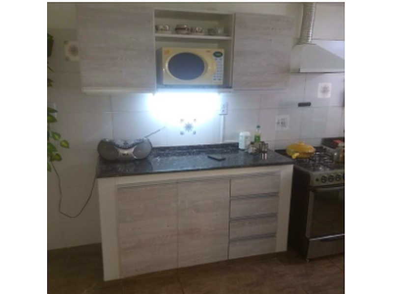 Rediseño de muebles de cocina -> despensero empotrado, bajomesadas y alacenas en melamina sobre MDF en color blanco y pino Cascina, herrajes de aluminio y correderas telescópicas