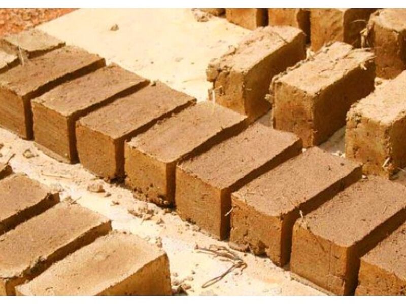 Material de construcción compuesto por barro, arena y fibras orgánicas, utilizado para hacer ladrillos secados al sol.