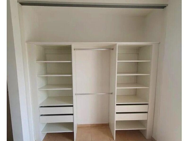 El interior de un armario puede estar dividido en secciones con estantes, barras para colgar ropa, cajones y compartimentos específicos para diferentes tipos de artículos. Estos diseños interiores pueden adaptarse según las necesidades individuales de almacenamiento.