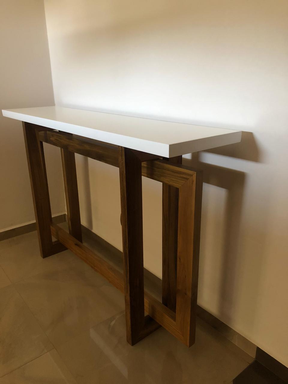 Suele incluir elementos como consolas, bancos o estanterías, y se caracteriza por su calidez y durabilidad. La madera permite una variedad de acabados y diseños, desde rústicos hasta modernos.