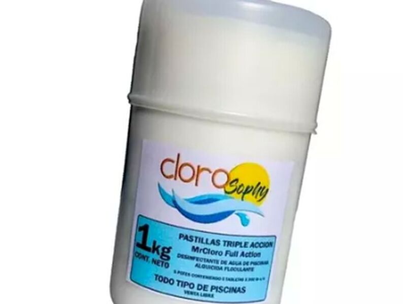 Mantenimiento: colocar en la boya cloradora o skimmer 1 pastilla triple acción cada 15.000 litros de agua.