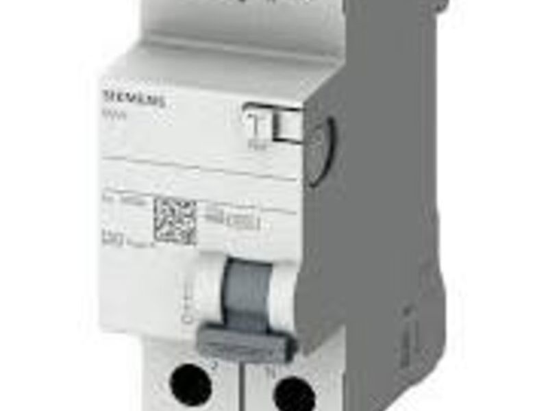 Este es un dispositivo de protección eléctrica fabricado por Siemens que combina las funciones de un disyuntor (protección contra sobrecargas y cortocircuitos) con la función de un interruptor diferencial (protección contra fugas de corriente a tierra). Al ser bipolar, tiene la capacidad de interrumpir el flujo de corriente tanto en la fase como en el neutro.