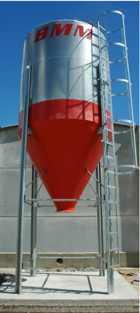 Este silo híbrido de alto rendimiento combina un cuerpo de acero galvanizado de chapa lisa (DX51D+Z400) con un cono inferior de poliéster reforzado. Esta combinación está diseñada para ofrecer la máxima resistencia estructural del acero junto con la higiene y excelente fluidez de descarga que proporciona el acabado en fibra y resina.
