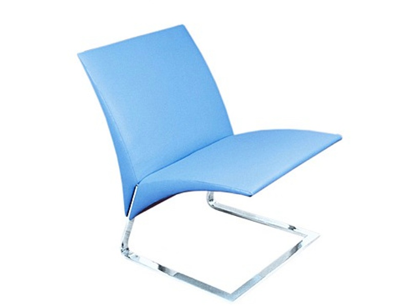 Estructura de fleje de acero con acabado cromado, estructura de asiento en madera multilaminada y curvada, relleno con espuma de poliéster de alta densidad, tapizado en ecocuero.