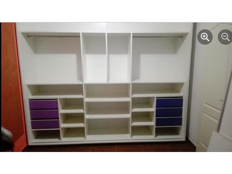 Closet empotrado color blanco incluye cajonera, estanteria y perchero.