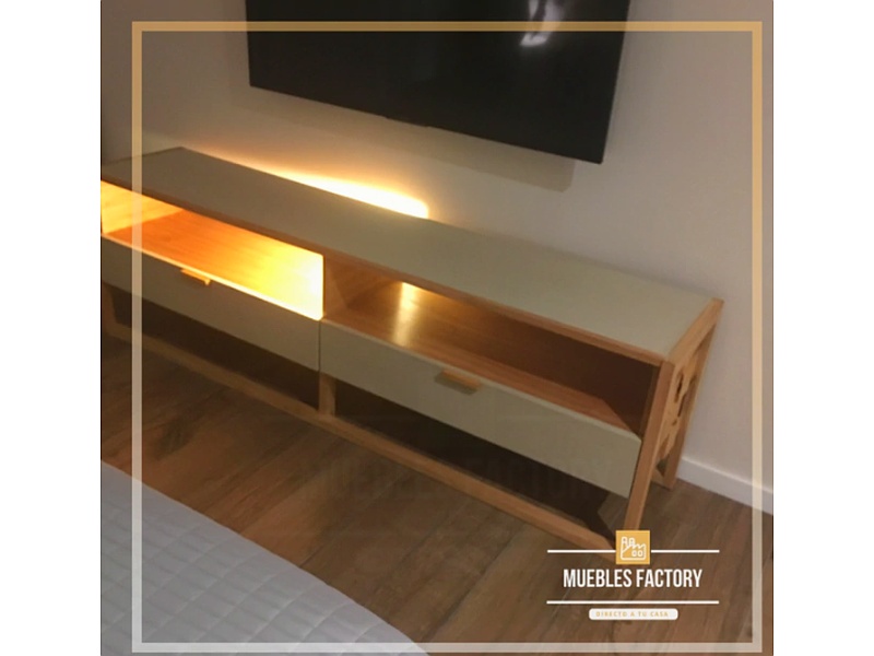 Comoda o bajo entelado en frentes, enchapado en tabla y paraíso macizo con guías metálicas y tirantes en madera. Los laterales en mosaico son realizados a mano y so con variadas maderas y colores, dandole calidez y diseño a tu ambiente. El entelado puede ser El acabado es en hidrolaca y el entelado realizado en tela tipo lino o arpillera con protección en hidrolaca, brindando una combinación perfecta de texturas.Opcional con cargo, entelado en tapa.