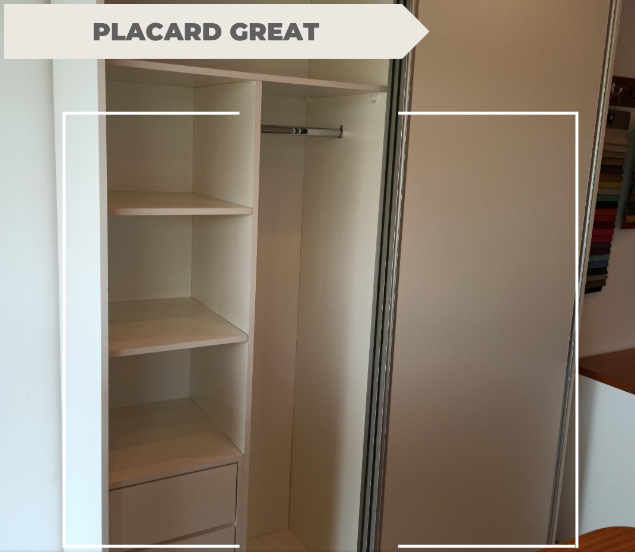 Hoy les traemos un placard con puertas corrediza 4 cajones 10 compartimientos y 2 espacios para colgar sacos, esto es melamina color blanco.