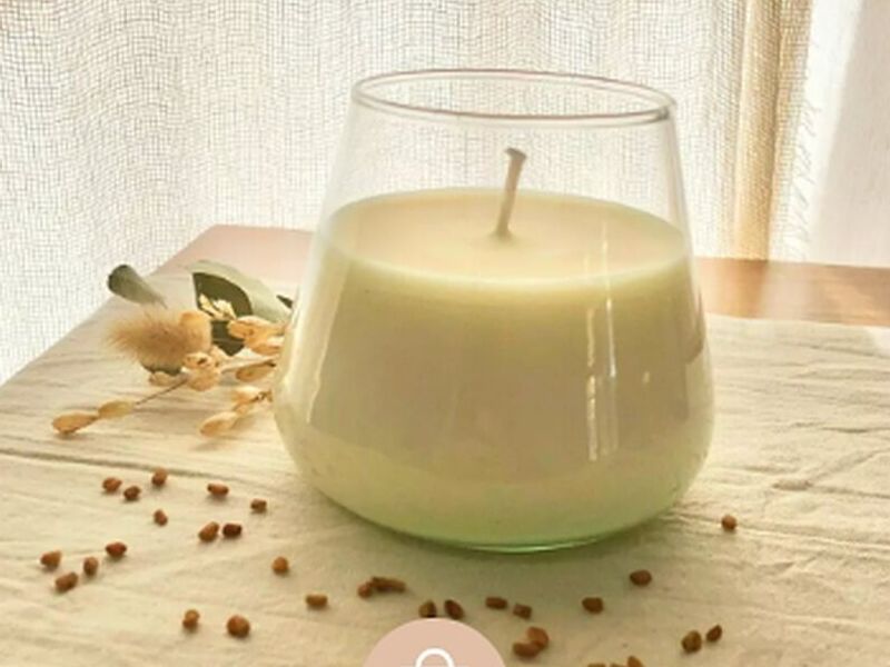 Vela de soja aromática en envase de vidrio.