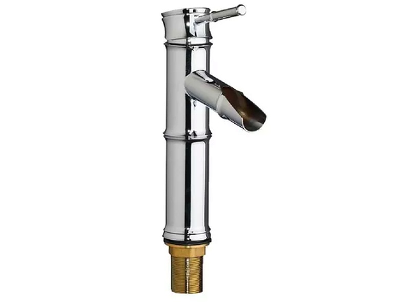 Grifería monocomando con diseño de cascada que emula la forma de un bambú, ideal para vanitorios. Su acabado cromado aporta un toque de sofisticación y brillo, mientras que su mecanismo de mezclado suave permite ajustar la temperatura del agua con precisión. Perfecta para un baño contemporáneo y elegante.