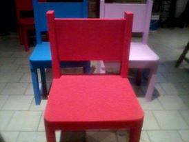 La silla infantil roja es un mueble pequeño y cómodo, diseñado específicamente para niños.
