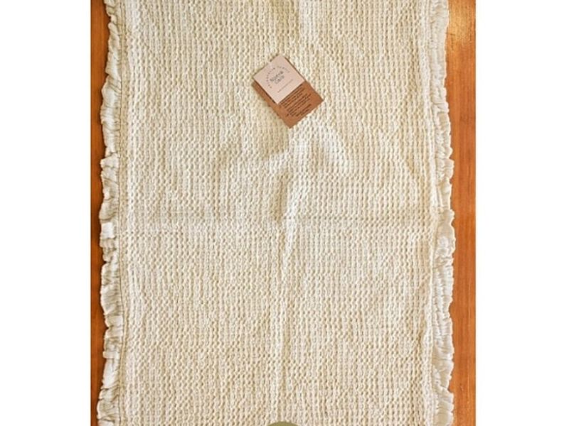 Afombra confeccionada en doble nido de abeja 100% algodon. Con voladito en sus laterales.