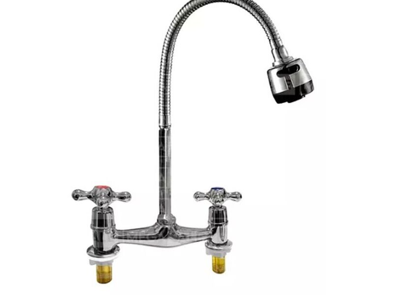 Este producto cuenta con un ancho total de 19 cm, un cuello flexible de 45 cm de longitud y un grosor de 1,5 cm, con una distancia entre agujeros de 14,5 cm y un largo de las roscas de 4,5 cm.