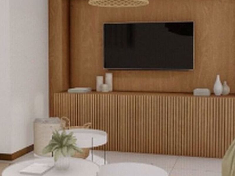 Una sala de TV con un aparador elegante es un espacio bien diseñado que combina funcionalidad y estilo. El aparador elegante proporciona almacenamiento adicional para equipos electrónicos, libros o decoraciones, al tiempo que añade un toque de sofisticación al ambiente. Este diseño crea un espacio acogedor y organizado, ideal para relajarse y disfrutar de películas o programas de televisión con amigos y familiares.