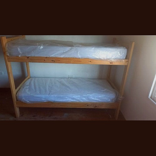 La cama litera sencilla de madera natural es una opción funcional y estética ideal para optimizar el espacio en habitaciones pequeñas o para alojar a invitados. Diseñada para una plaza, esta litera se destaca por su construcción robusta y duradera, garantizando la seguridad y comodidad de quienes la utilizan.