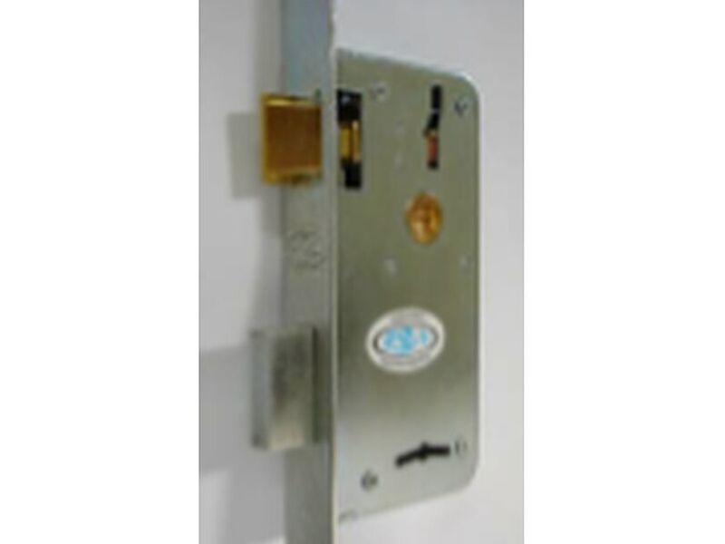 Cerradura caja chica frente corto pasador rectangular con 4 seguros internos. Terminación cerradura, contrafrente y bocallaves zincados. Pestillo de bronce, nuez de hierro.
