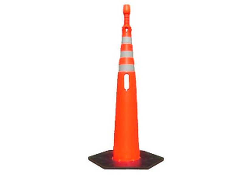 El cono obelisco de 115 cm es un dispositivo de señalización vial utilizado para marcar y dirigir el tráfico en carreteras y autopistas. Su altura significativa lo hace fácilmente visible para los conductores, incluso a larga distancia, mejorando la seguridad vial. Está fabricado con materiales duraderos y resistentes a las condiciones climáticas adversas.