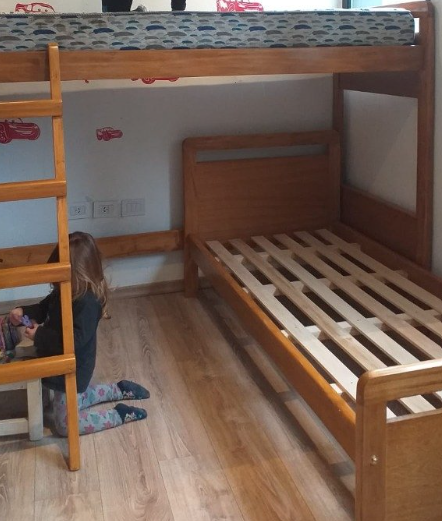Las camas son en madera maciza de cerejeira, es una madera dura a diferencia del pino, melamina o saligna que es el 90% de lo que se usa ahora. Cada elastico que es donde va cada colchon soporta mas de 400 KG sin problemas, justamente en lo que nos enfocamos es en la resistencia de las camas. Tenes 5 años de garantia por si se te rompe cualquier parte te lo cambiamos.