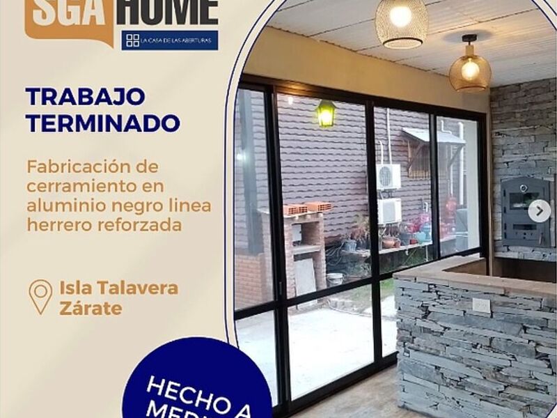 "Cerramiento en aluminio negro con vidrio de seguridad: Una opción elegante y segura para tu espacio. El aluminio negro proporciona un aspecto moderno y sofisticado, mientras que el vidrio de seguridad garantiza protección y tranquilidad. Perfecto para crear ambientes estéticos y resistentes en hogares u oficinas."