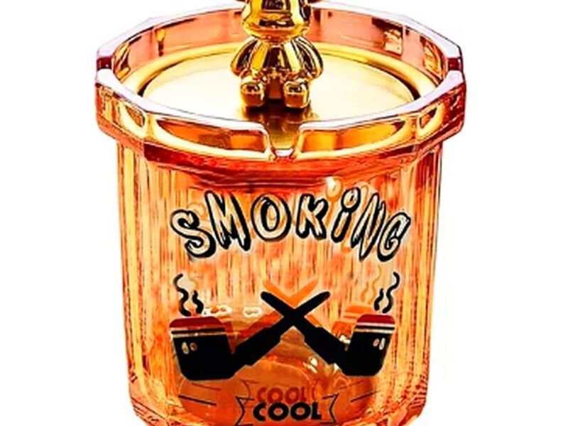 Cenicero De Cristal Con Embudo Y Tapa Ciervo Osito Dorado