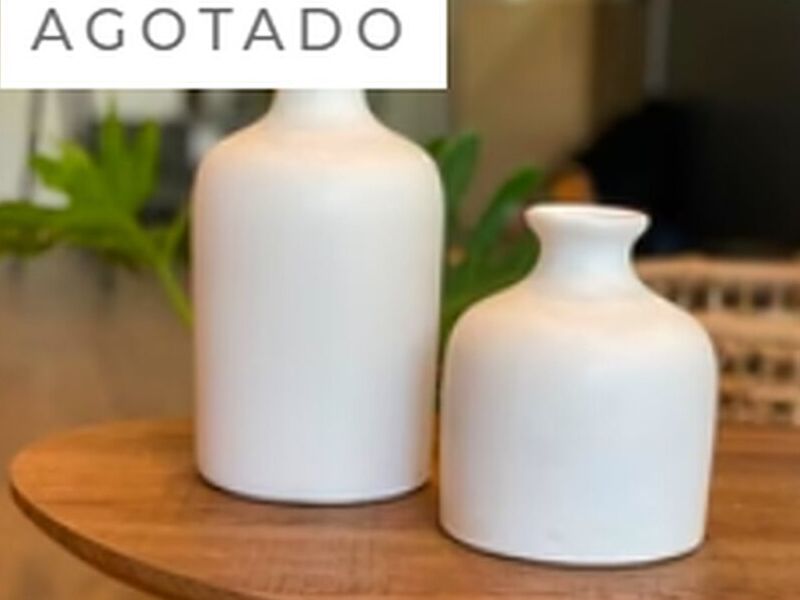 Duo de jarrones en color off white, una excelente pareja para decorar tus mesas bajas o estanterias. Son objetos de deco.