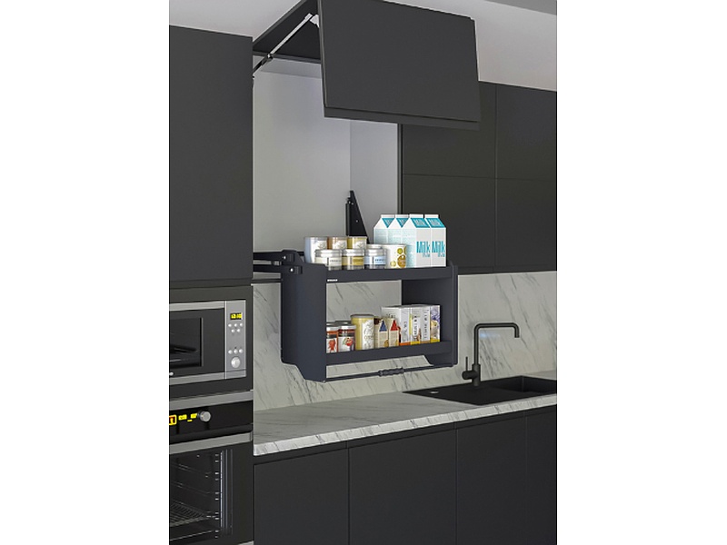 • Cuando se despliega, proporciona un fácil acceso a los estantes que van hacia adelante y hacia abajo.