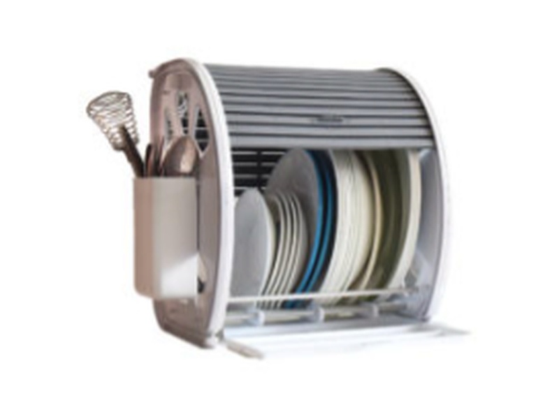Alacena Escurridora Secamax, tiene persianas que cubren su vajilla del polvo, porta cubiertos, y bandeja para retener el exceso de agua.