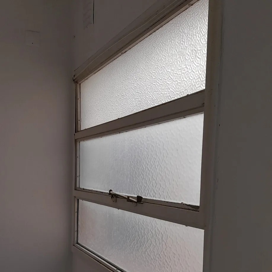 Ventanas de aluminio y vidrio texturizado con diseño.