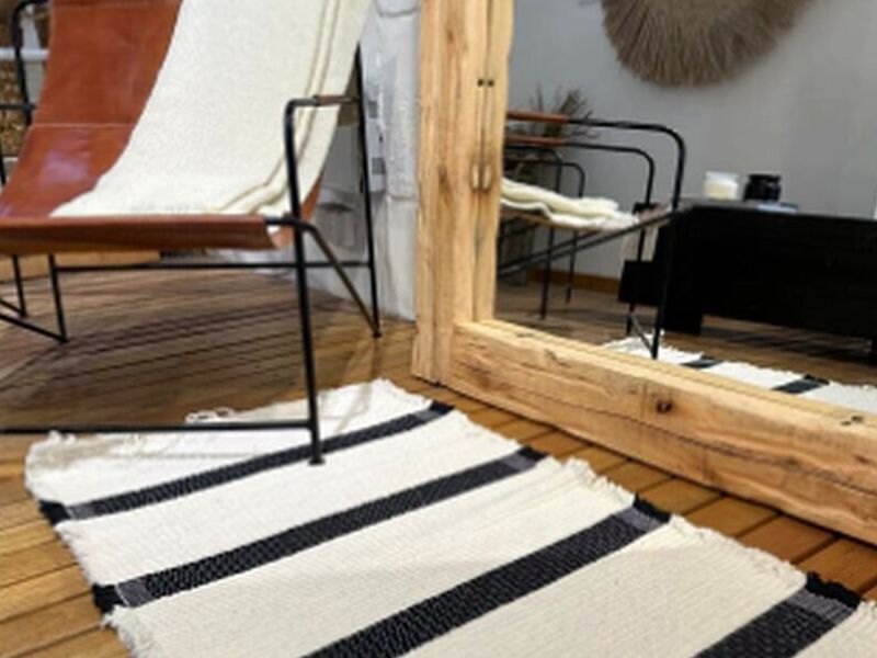 Alfombra tejida de algodon con rayas.