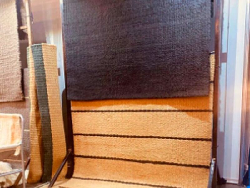 Alfombras tejidas en telar (puede ser yute o sisal) con base de friselina en el reverso para darle mayor rigidez y funciona como anti deslizante. Se realizan a pedido y a medida.