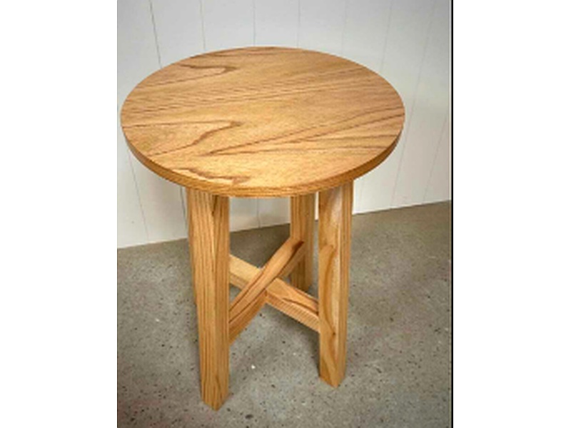 Especificaciones: Mesa pequeña auxiliar hecha de madera de acacia, con diseño redondo y base cruzada.