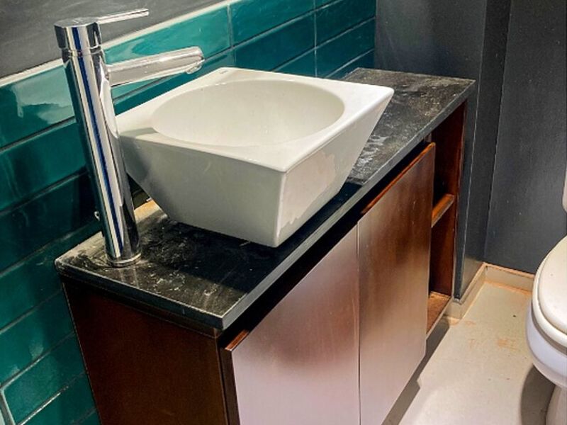 Podemos diseñar los muebles de tu baño, como este bajo mesada en melamina, ideal organizar en poco espacio todos los elementos de higiene y tocador.